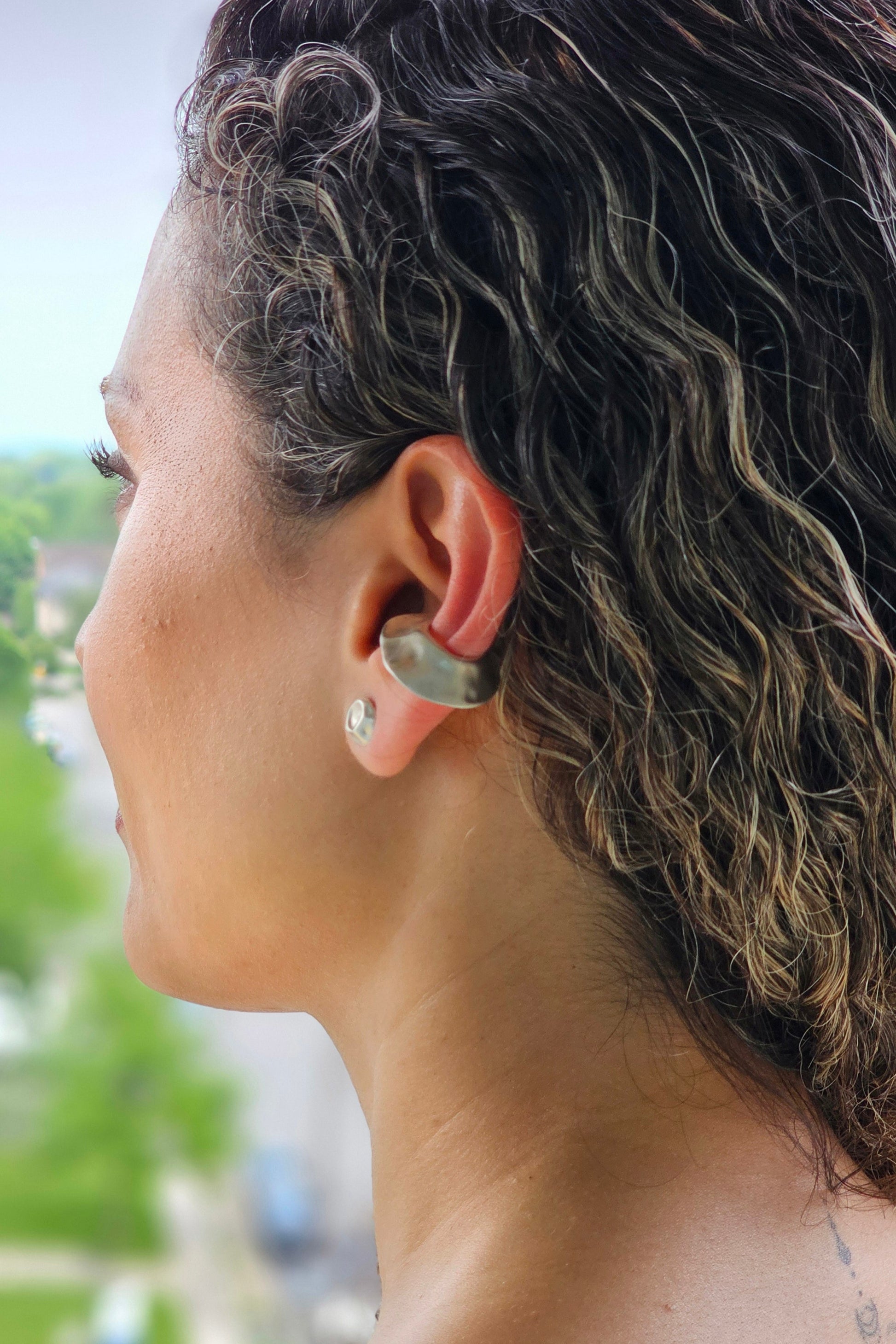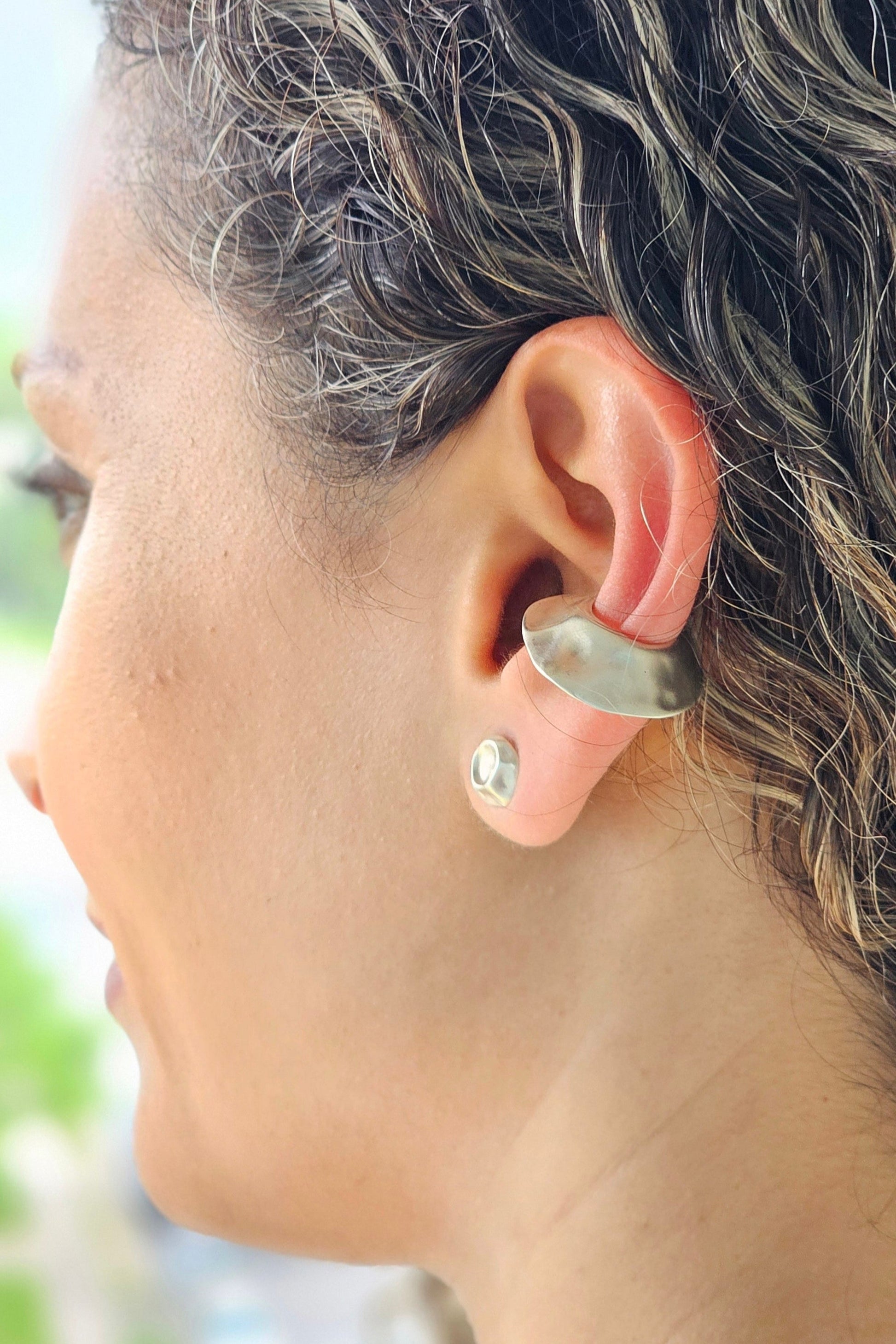 Sleek silver ear cuff that wraps around your ear with bold style, no piercing required.