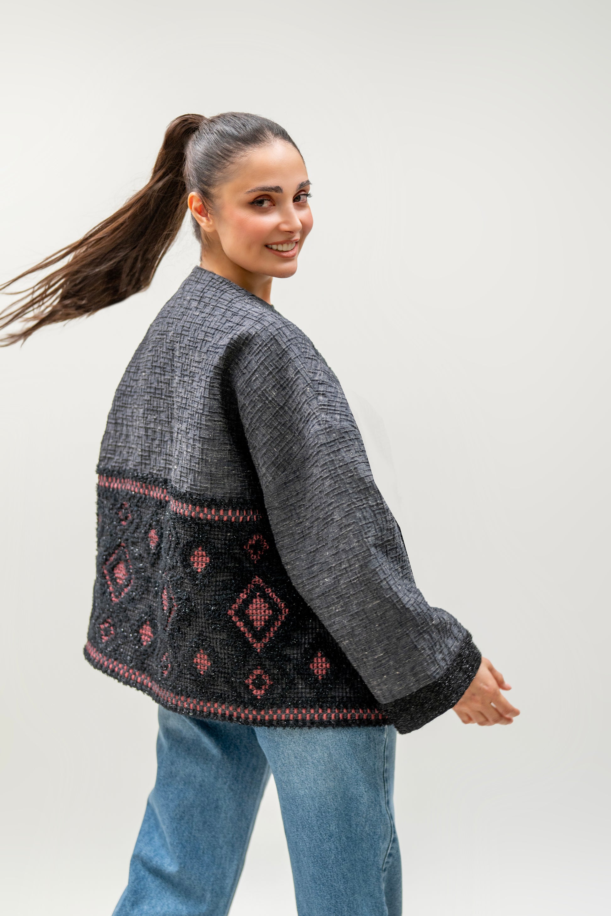Charcoal Geometric Handwoven Jacket