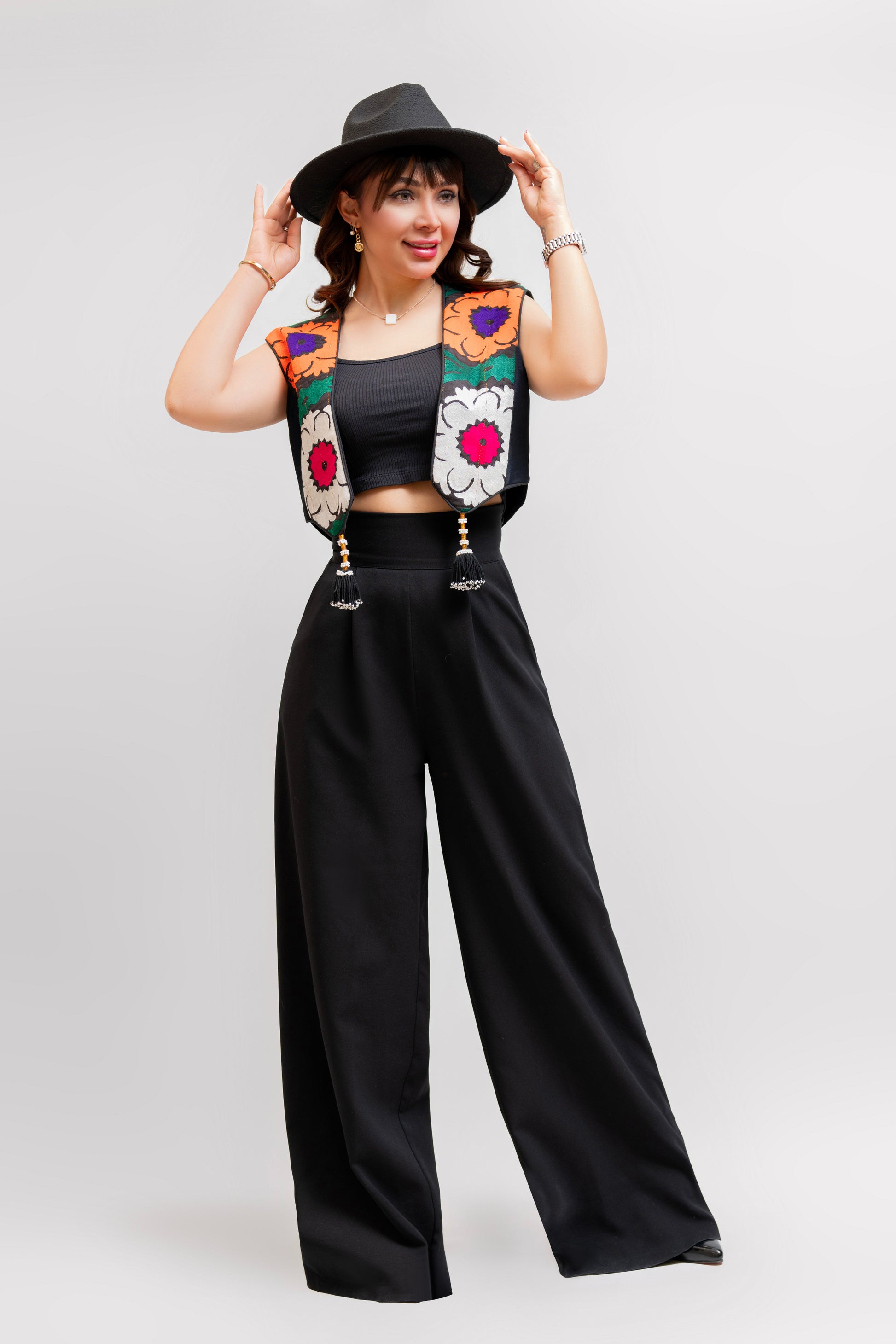 Handmade, one-of-a-kind floral crop vest. Designed to turn heads with vibrant embroidered patterns and chic details.