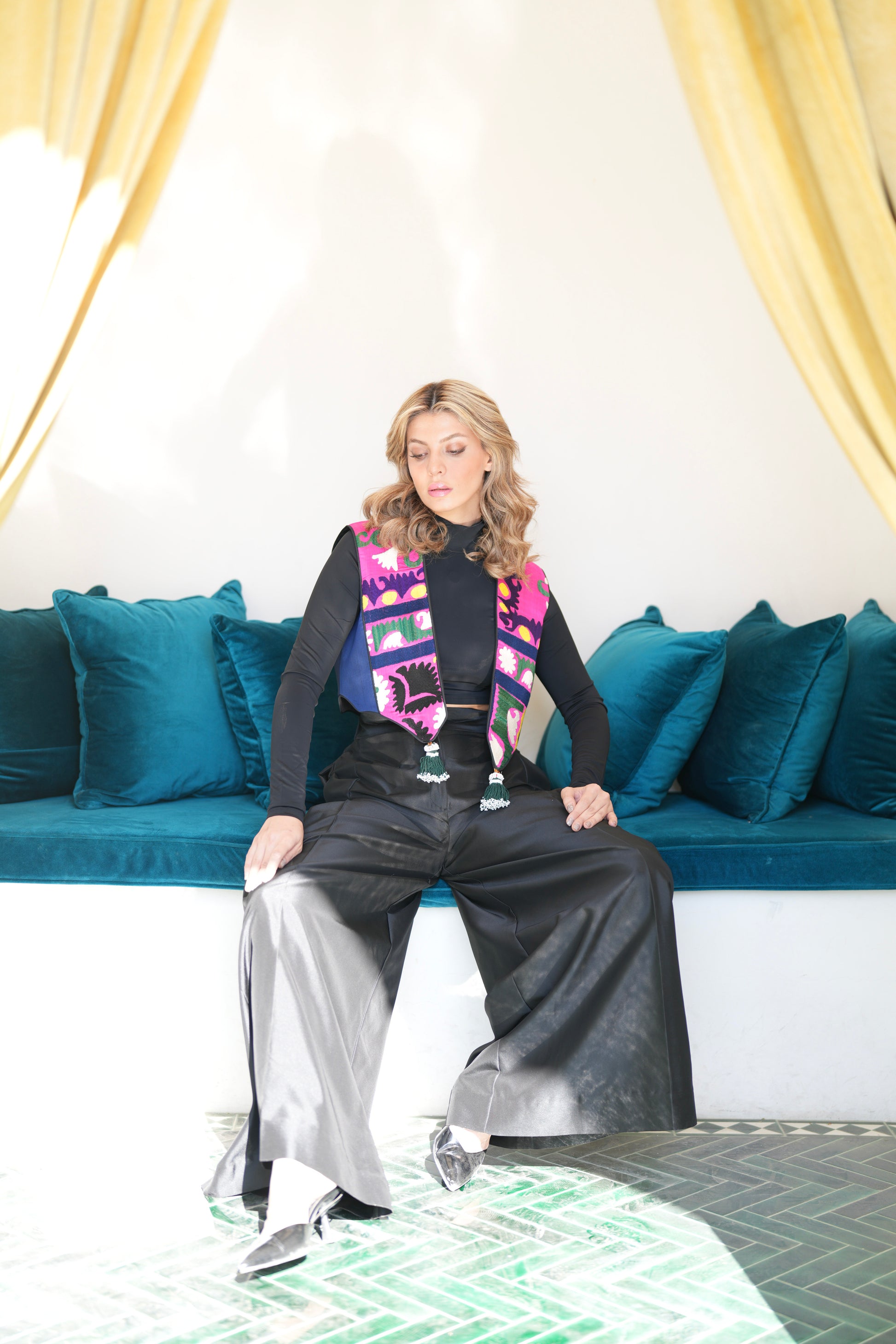 Handmade, one-of-a-kind floral crop vest. Designed to turn heads with vibrant embroidered patterns and chic details.