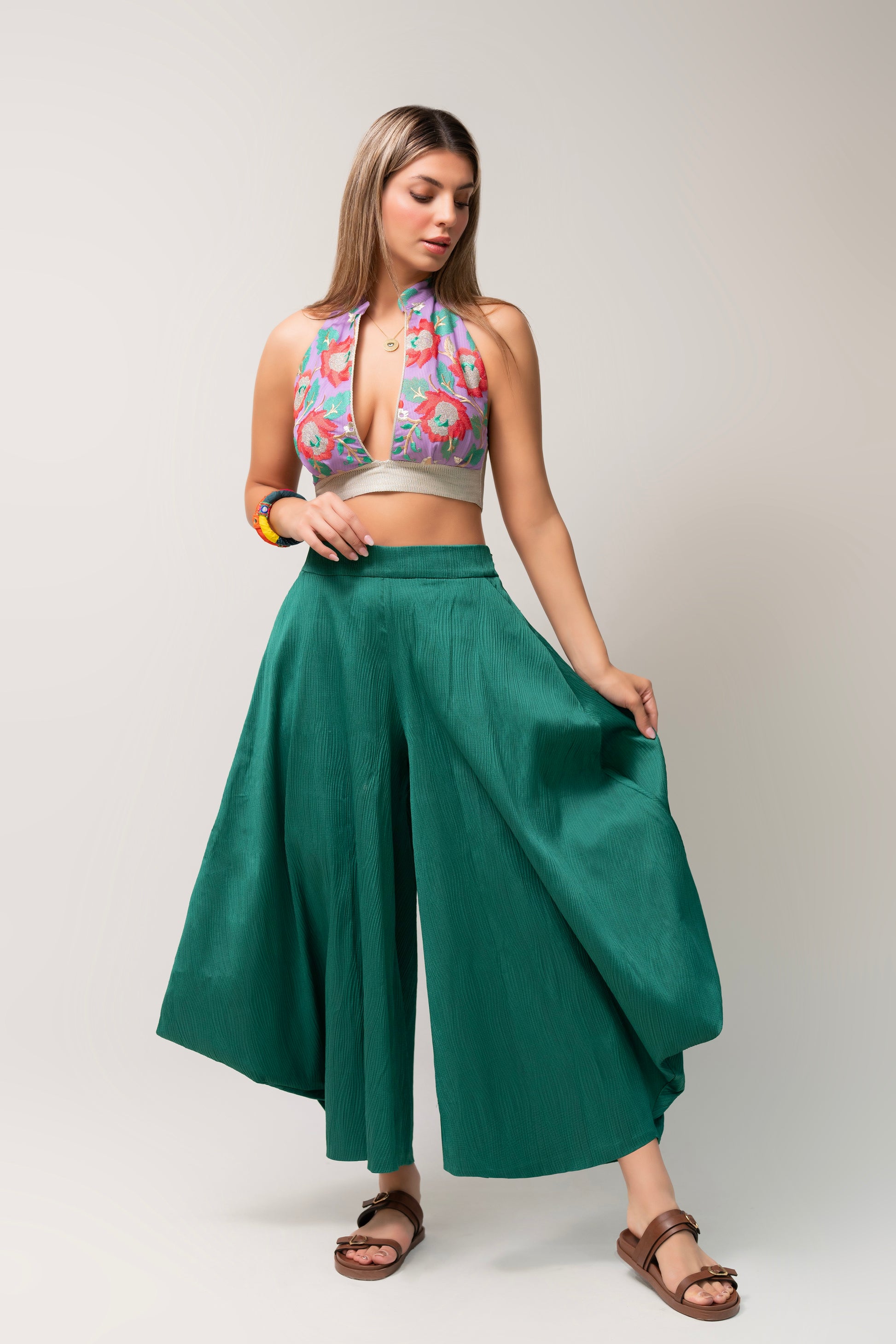 Styling tip: Pair them with our Floral Embroidered Halter Top for a vibrant, coordinated look.