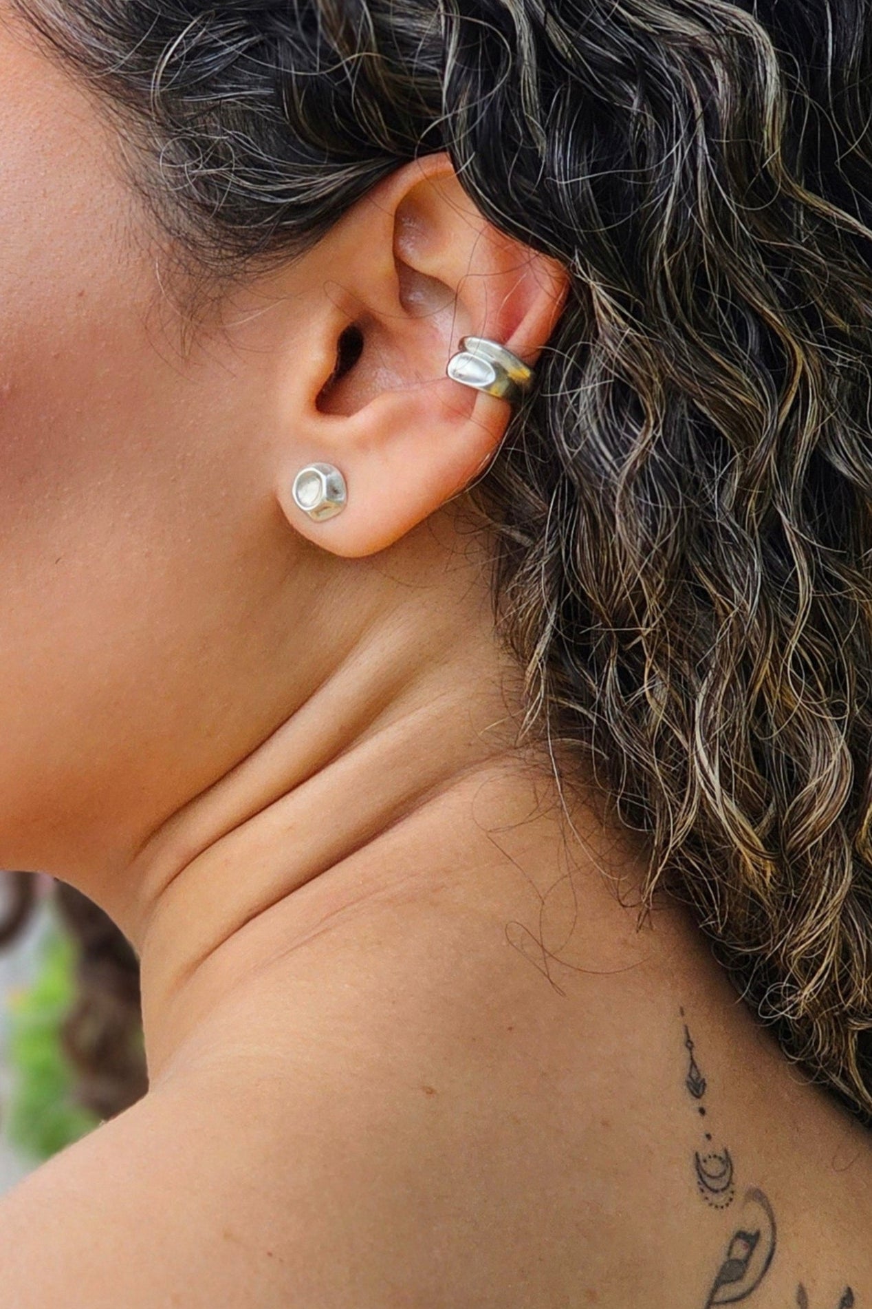 Sleek and sculptural silver dome studs, lightweight, modern, and perfect for everyday elegance.