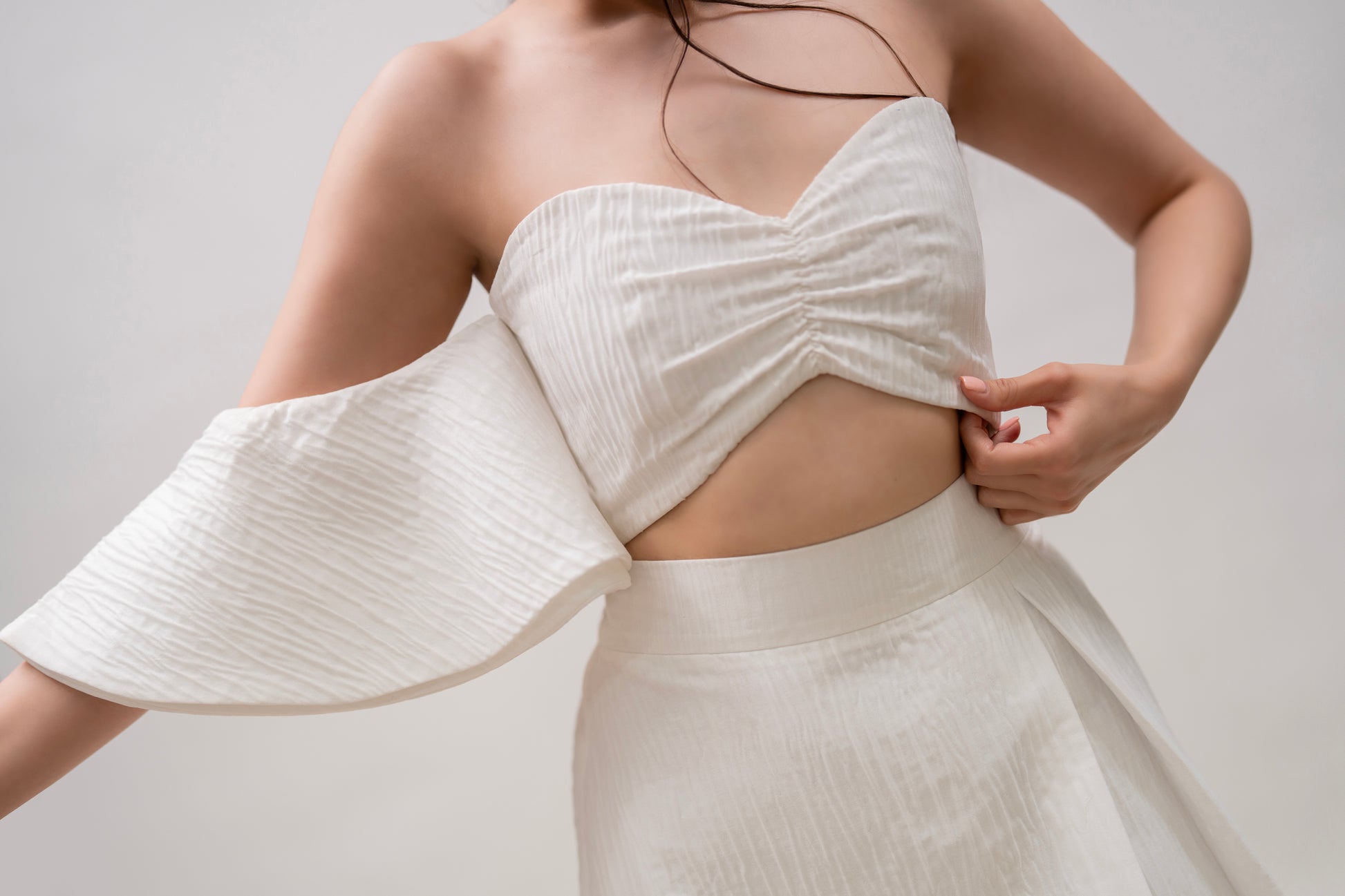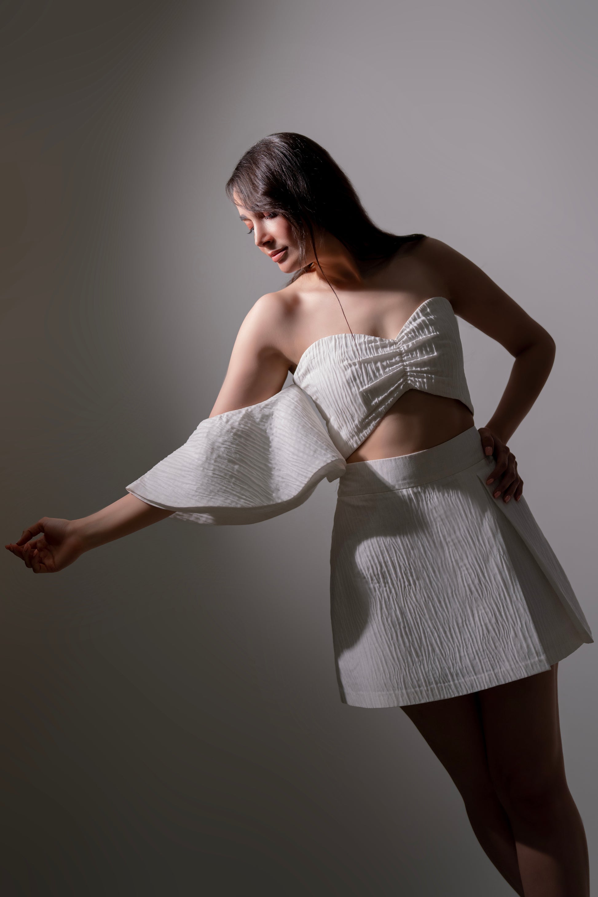 White One-Sleeve Top & Skirt Set